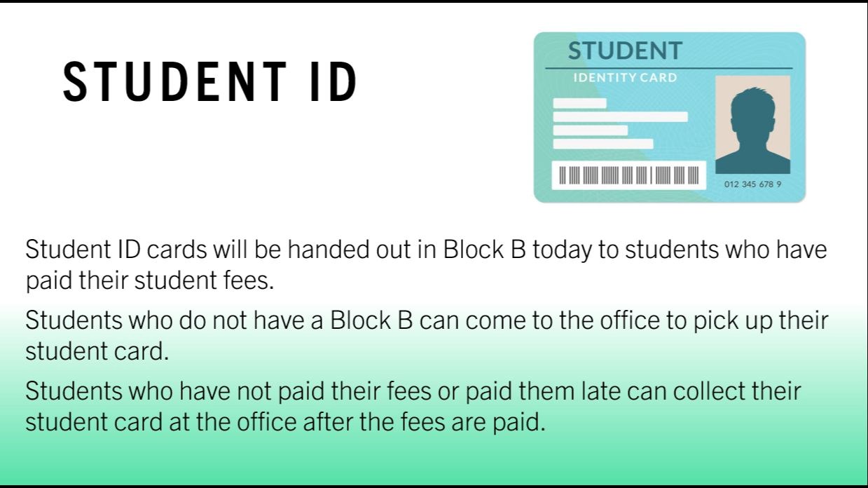 Student ID cards will be handed out in Block B today to students who have paid their student fees.