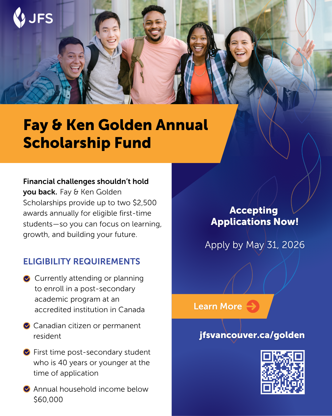 - Fay & Ken Golden Annual Scholarship - Apply by May 31, 2026