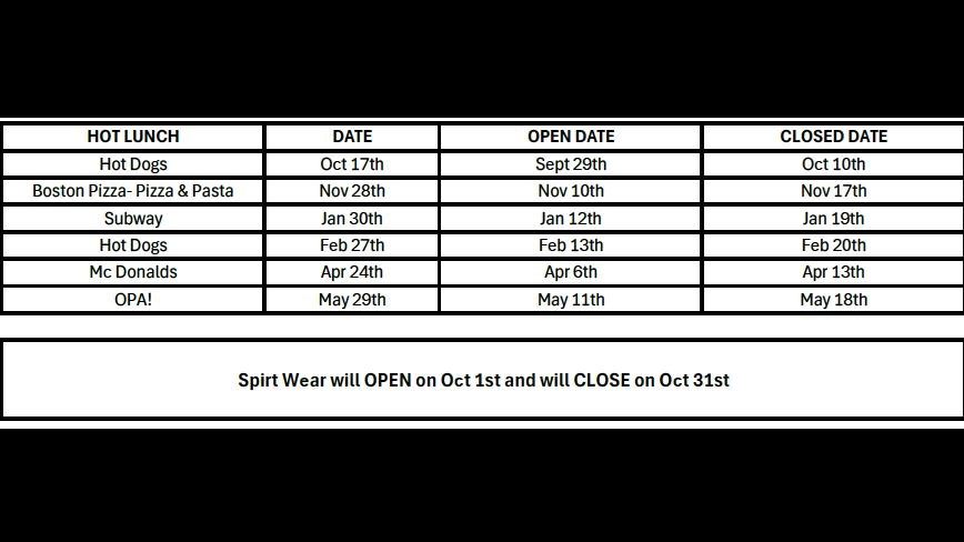 Munchalunch!! For all PAC hot lunches, fundraisers and events!