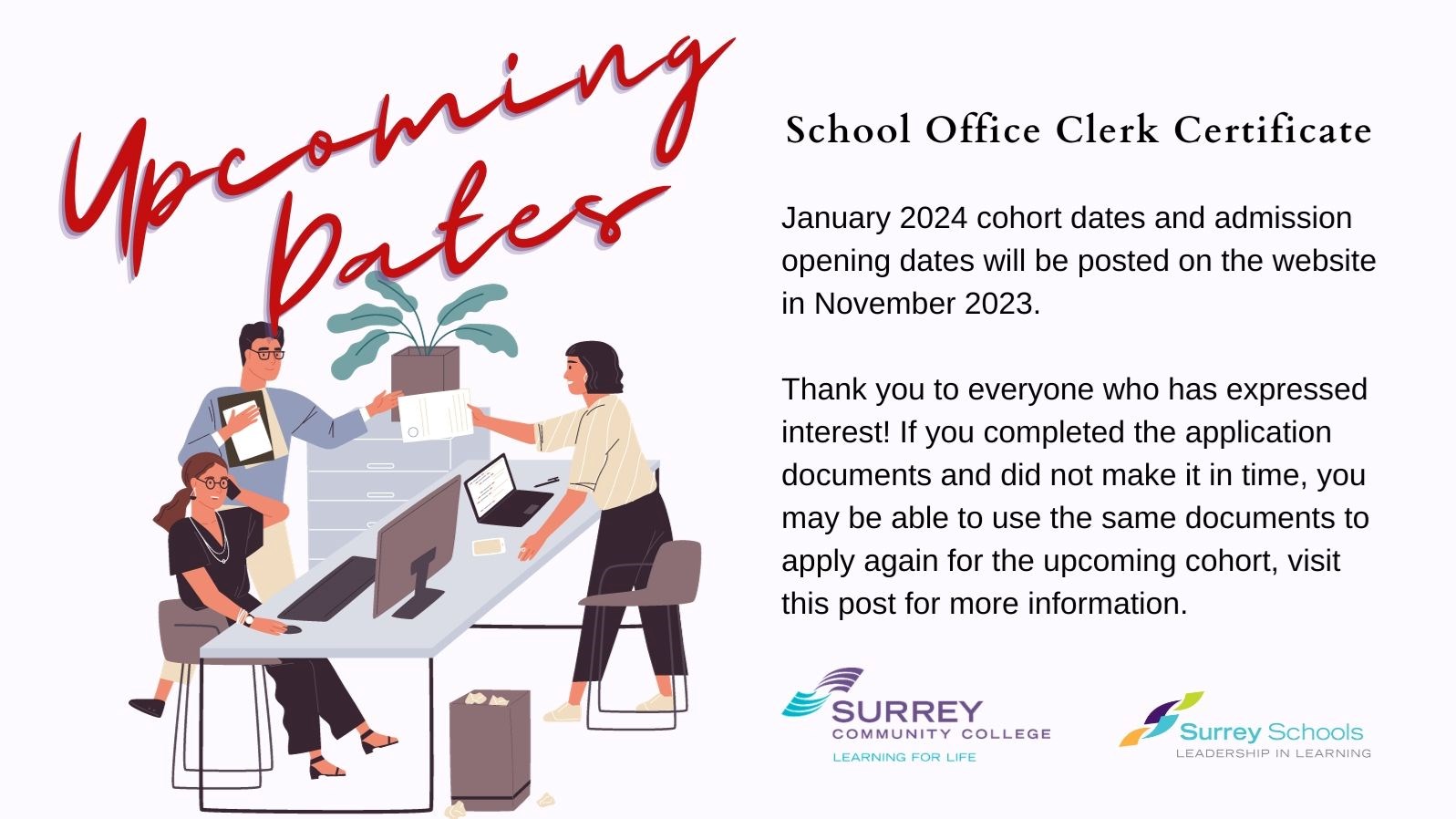School Office Clerk Certificate Admissions and Cohort Schedule