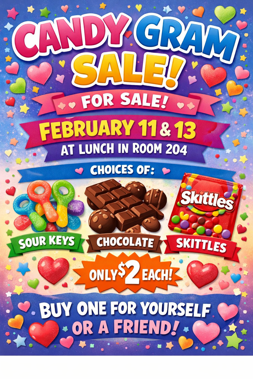 The Social club will be selling Candy Grams at lunch in room 204. $2each.