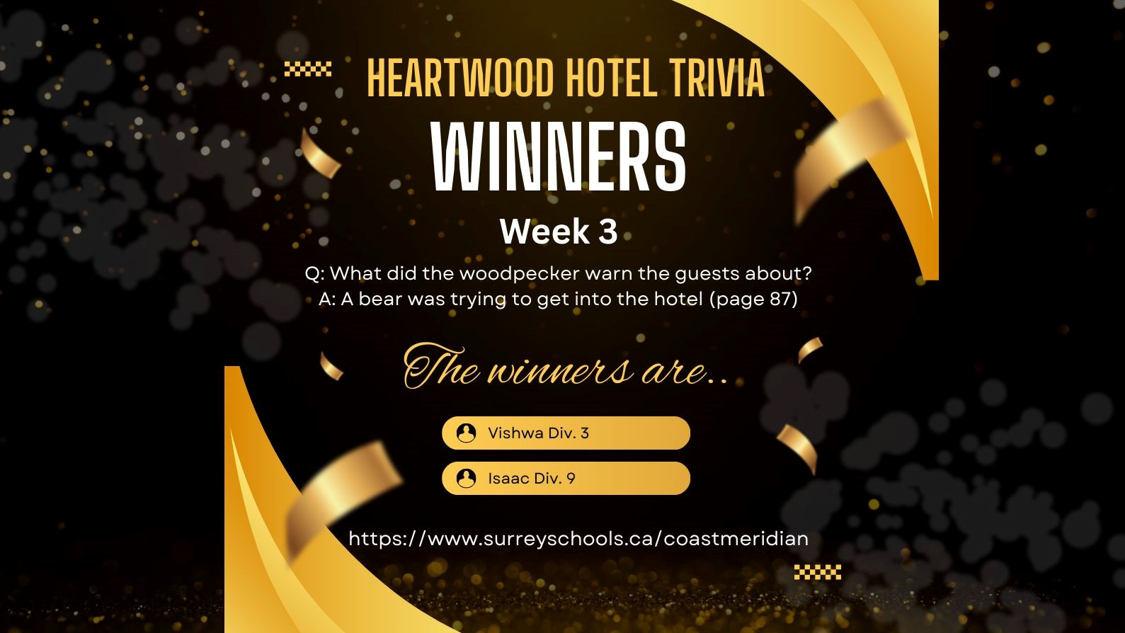 Congratulations to Vishwa and Isaac for correctly answering the trivia question and for being the lucky winner of the draw. Congratulations to Ms. DeLange's class for having the most entries. Keep reading to find out what happens to Mona next.