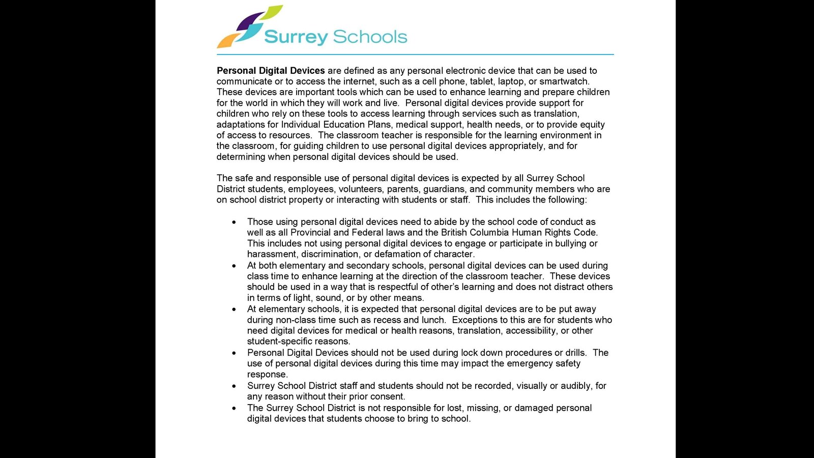 Code of Conduct and Personal Digital Devices Code of Conduct