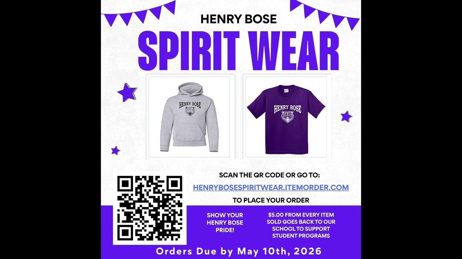 $5 from every order will also go back to our school to support programs and resources for students.
