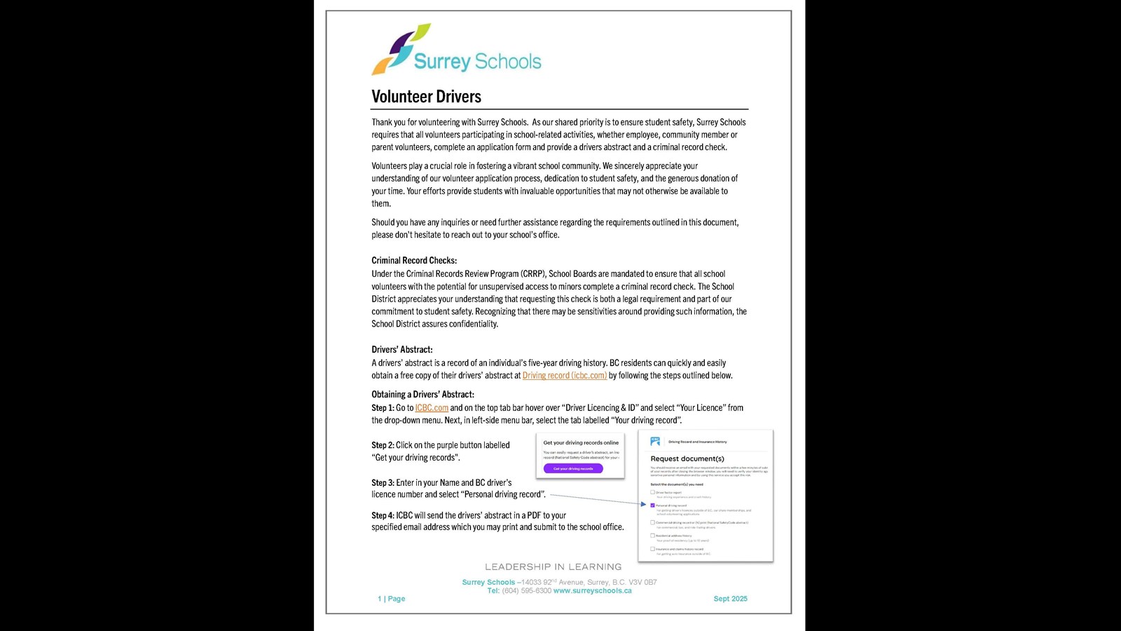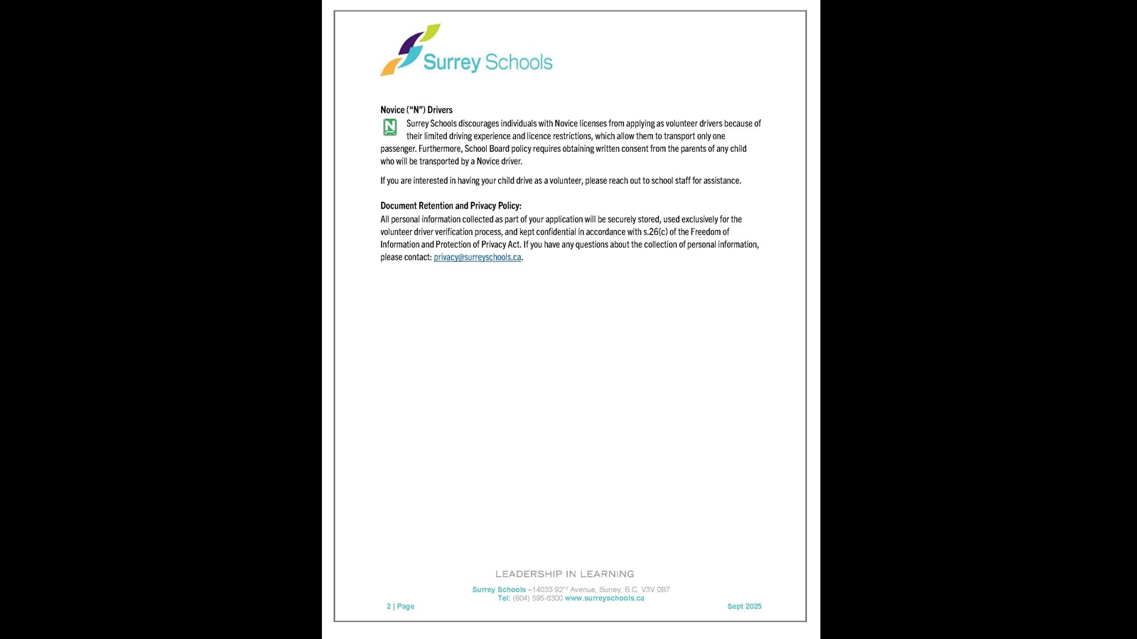 Surrey Schools has recently updated its policy for parent volunteer drivers. If you plan to drive for any upcoming school activities, please review the updated policy and follow the instructions provided.