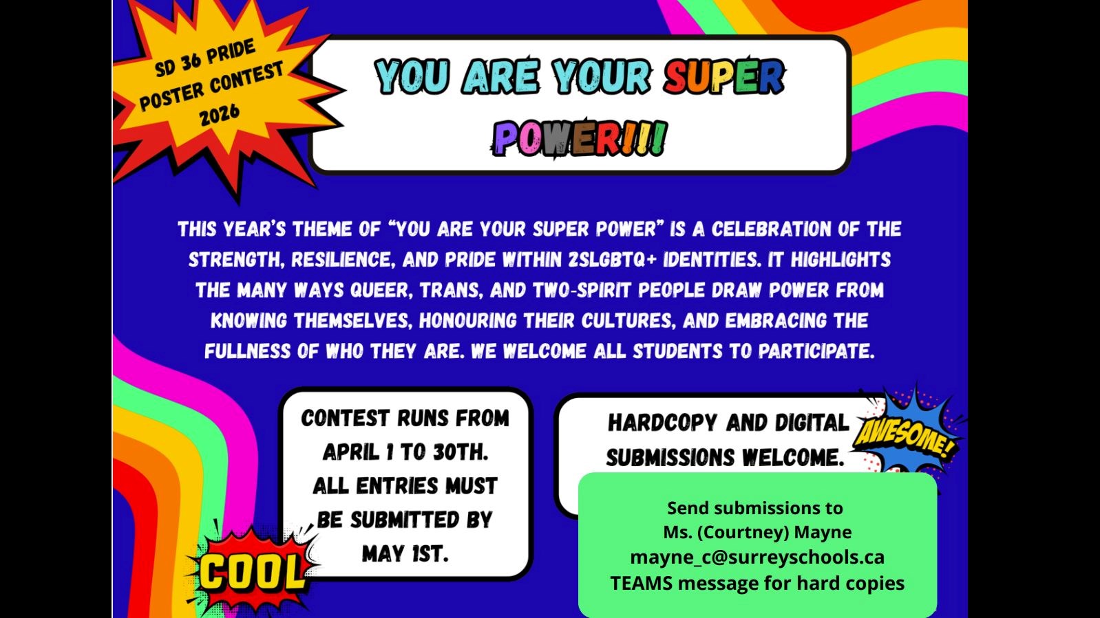 The theme is - “You Are Your Super Power”, a celebration of the strength, resilience, and pride within 2SLGBTQ+ identities. Interpret this however feels right to you.