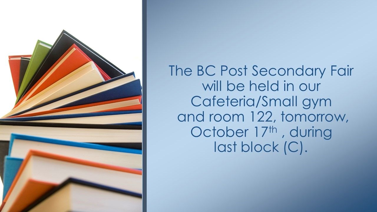 All grade 11 and 12 students are invited to attend WITH THEIR CLASS AND TEACHER during the assigned times.