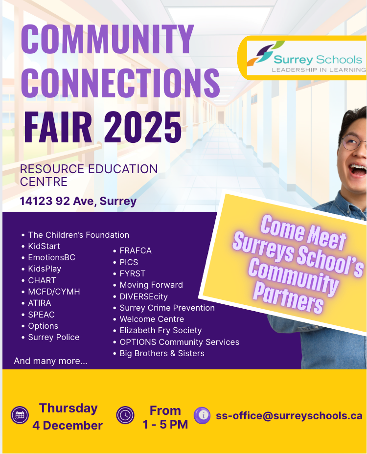Surrey Schools families and staff! Join us Dec. 4 for our first-ever Community Connections Fair!