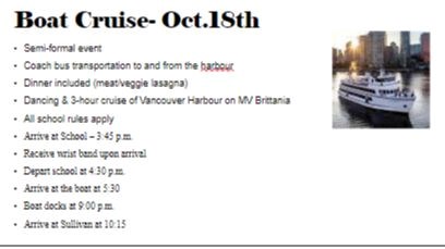 Grad Assembly September 22nd - Boat Cruise, Grad Expectation Letter, Grad Photos and Student Parking.